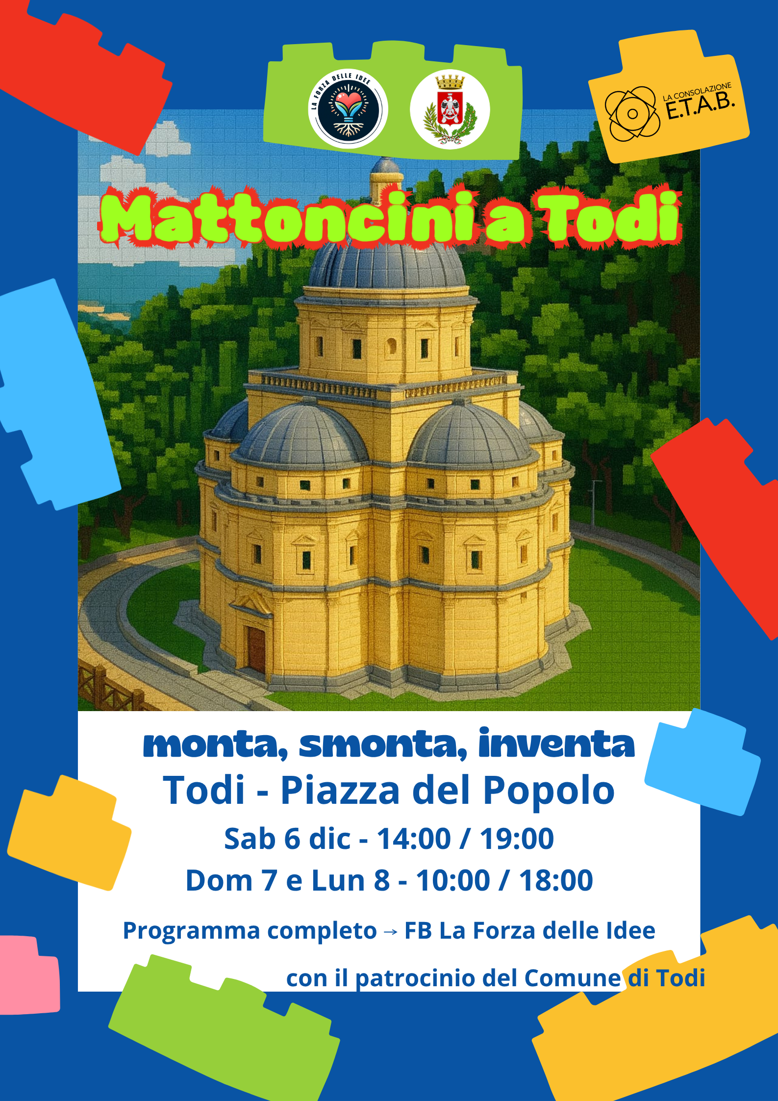 La città di Todi si prepara ad ospitare un evento che è al contempo spettacolo, laboratorio e momento di riflessione sull'importanza del gioco creativo: arriva “Mattoncini a Todi: monta, smonta, inventa”. L'iniziativa, promossa dall’APS La Forza delle Idee con il patrocinio e la collaborazione di ETAB e del Comune di Todi, non è solo un'esposizione di opere e collezioni realizzate con i celebri mattoncini da costruzione, ma un vero e proprio modello di gioco e approccio educativo. L’obiettivo è quello di valorizzare la creatività e la manualità con una mostra-laboratorio attraverso l’uso di giochi tradizionali e non legati alle APP dei cellulari. Un ritorno al materiale contro il virtuale che impazza e ci travolge ogni giorno.