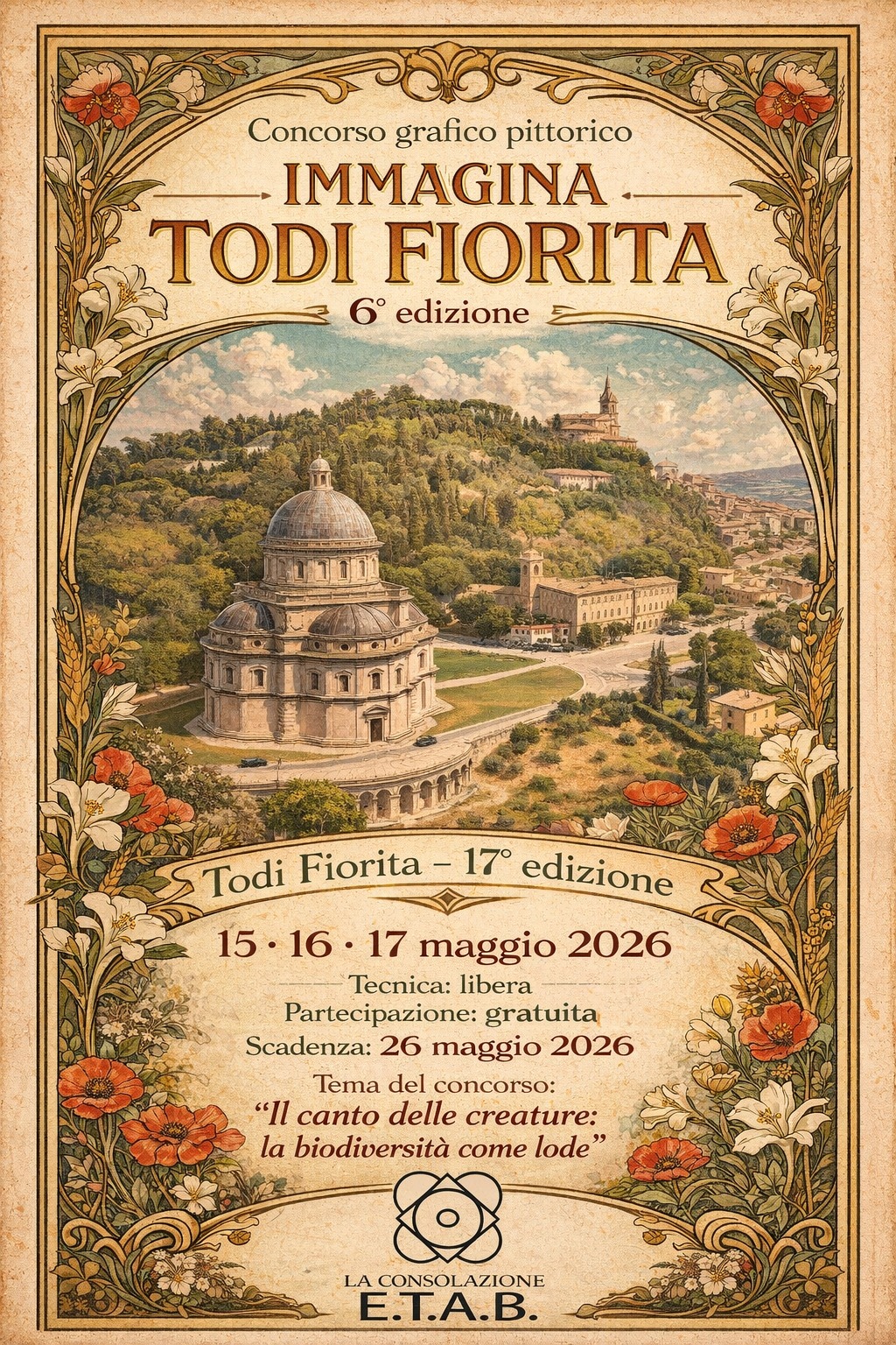 “La Consolazione” ETAB (Ente Tuderte di Assistenza e Beneficenza) Todi in collaborazione e su proposta dell’Associazione VERDETODI, organizza, nell’ambito della manifestazione denominata “TODIFIORITA” edizione 2025, la quarta edizione del Concorso grafico – pittorico e fotografico "IMMAGINA TODIFIORITA”